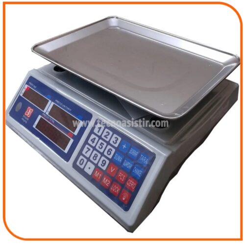 Equipada con una pantalla LED de alta visibilidad, muestra el peso, el precio unitario y el total en tres áreas independientes (5 dígitos para peso, 5 para precio y 6 para total). Su función de cálculo automático agiliza el proceso de venta, mientras que las opciones de tara, suma acumulativa, ahorro de energía y protección contra sobrepeso garantizan una operación eficiente y segura.